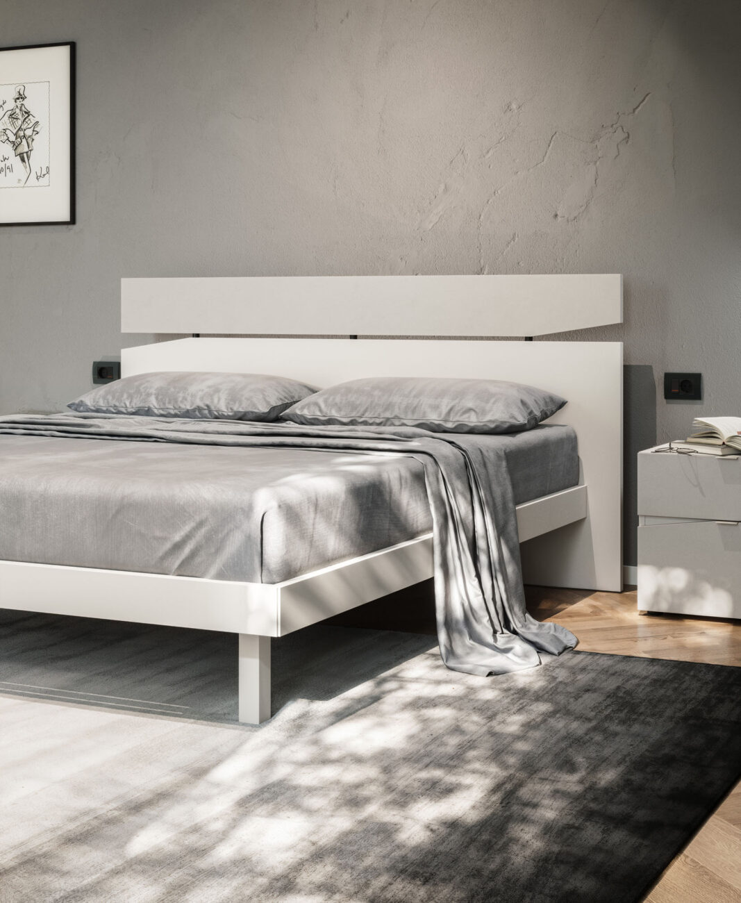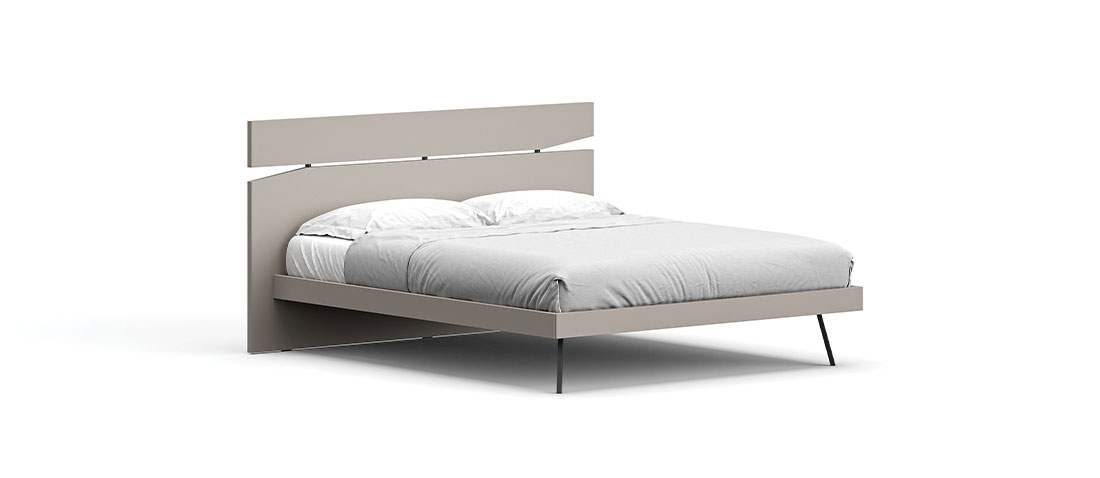 Contra bed with Alfa bed frame in Seta and Cemento Tropea finish.
