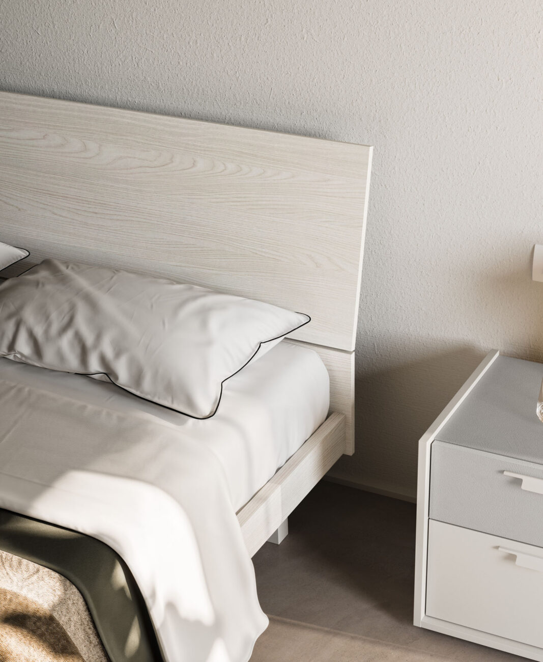 Banco bed with Alfa bed frame in Sbiancato finish.