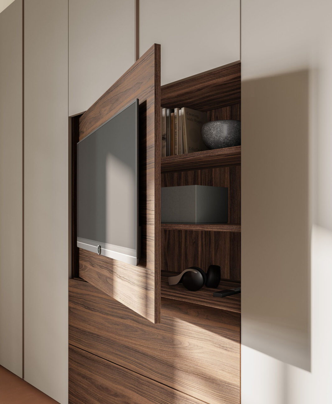 Tratto hinged door wardrobe with Visual element in Cotto e Tortora finish. Structure in Cotone finish.