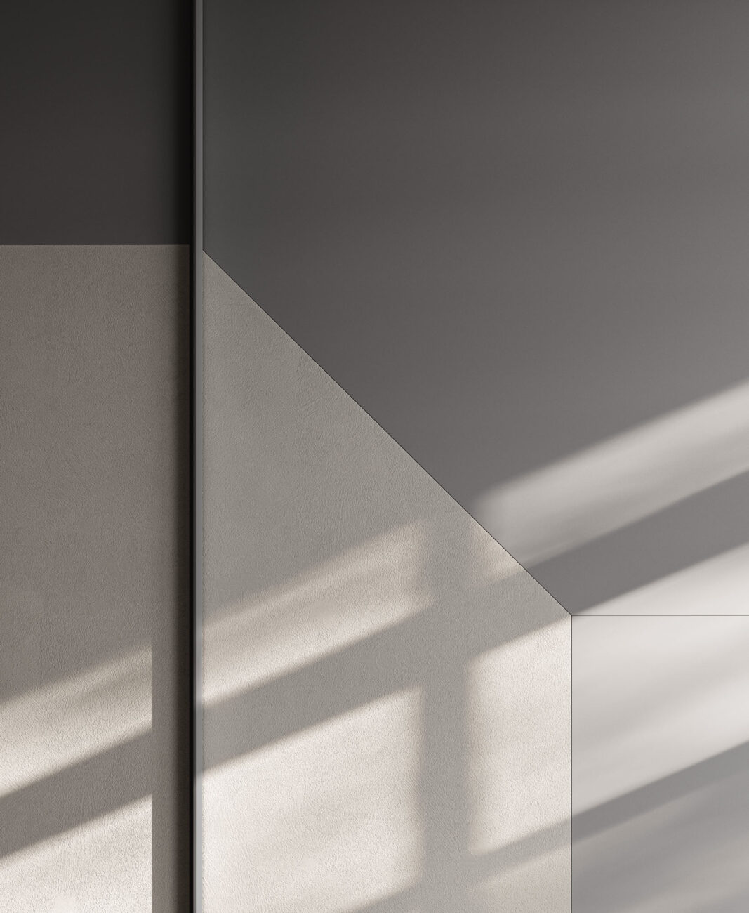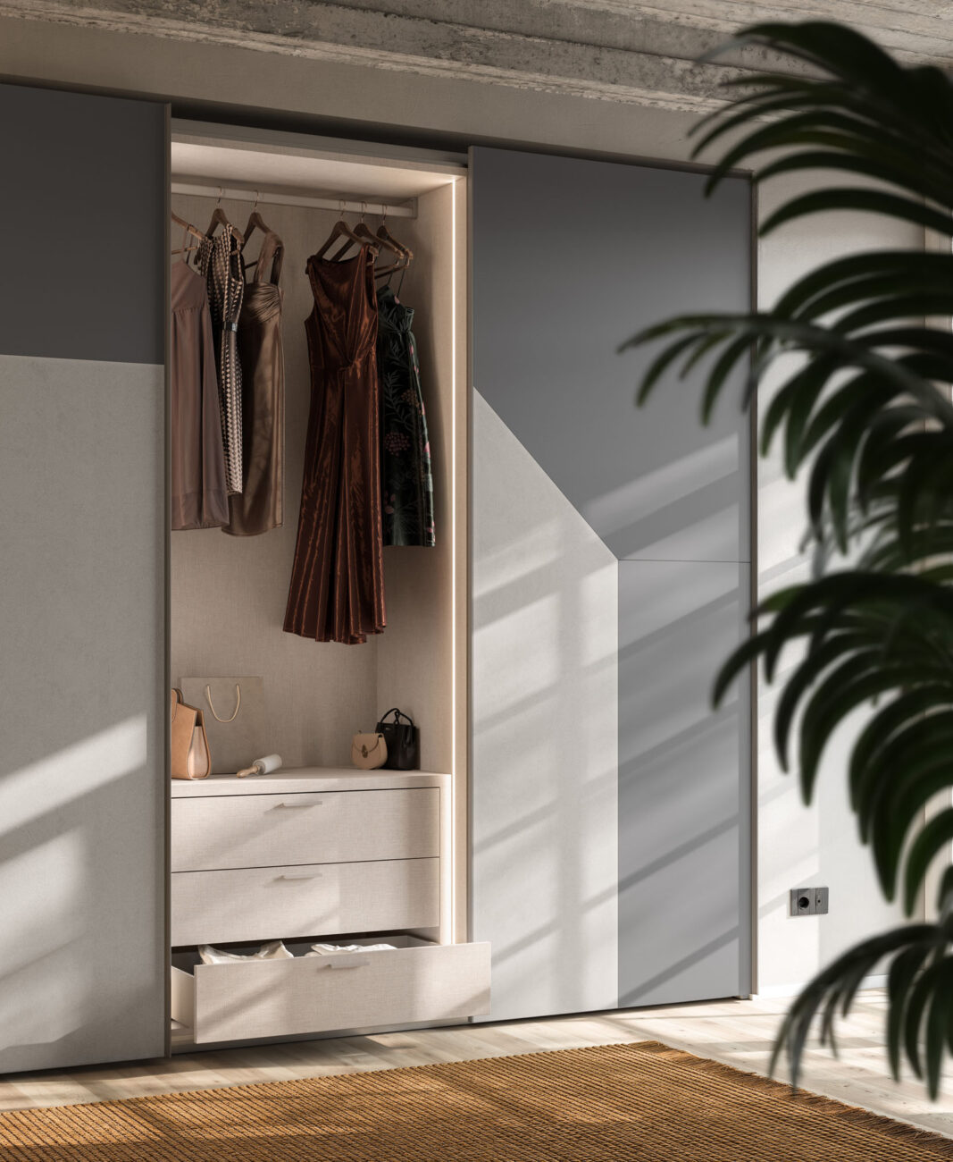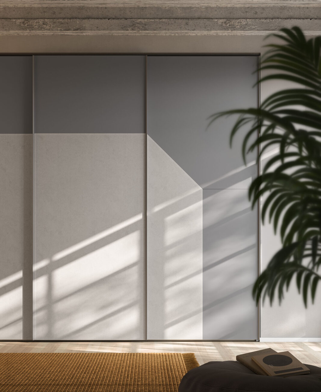 Level UP and Climb UP sliding door wardrobe in Grigio and Cemento Tropea finish. Structure in Cotone finish.